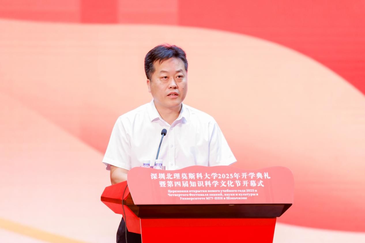 На сессии для бакалавров секретарь партийного комитета Средней экспериментальной школы провинции Шаньдун Фан Куймин выступил в качестве приглашённого представителя школ и передал первокурсникам 2025 года свои поздравления. Во-первых, он пожелал всем сохранять ясный и независимый характер, применять системное мышление и рациональный подход для преодоления вызовов информационной эпохи. Во-вторых, — проявлять силу упорного труда, развивая ключевые компетенции через глубокое обучение и практический опыт. В-третьих, — стремиться к высоким идеалам, сочетая личностный рост с развитием страны и внося свой юношеский вклад в процесс технологического самообеспечения и укрепления государственной мощи . Фан Куймин также высоко оценил вклад Университета МГУ-ППИ в Шэньчжэне в интеграцию образовательных ресурсов Китая и России, а также в поддержку национальных стратегий. Он выразил надежду, что университет и впредь будет движущей силой технологических инноваций в регионе Большого залива, продолжая готовить востребованные высококвалифицированные кадры.